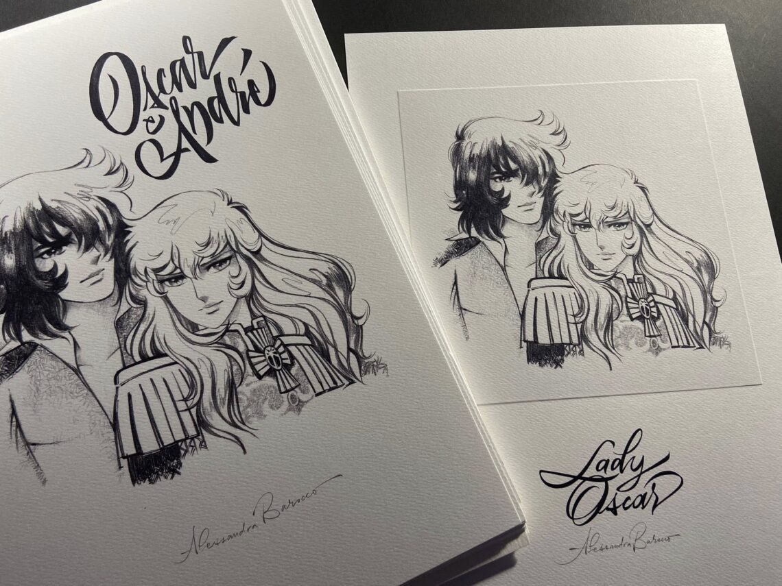 Non smetto mai di stupirmi, meravigliarmi ed essere felice a vedere quante persone siano state ispirate da Oscar per la loro arte e creatività. Alex Barocco, un’artista che ho l’onore di conoscere di persona, è calligrafa e cura da anni antiche capacità manuali, insegnandole anche, per recuperare doni che non devono andare persi. Oscar e André fanno parte delle sue creazioni in tema e a loro ha anche dedicato dei font originali con cui li ha celebrati. Ecco i nostri beneamati visti da Alex, che potete trovare qui su Instagram. Ecco una creazione di Alex per San Valentino con i nostri due